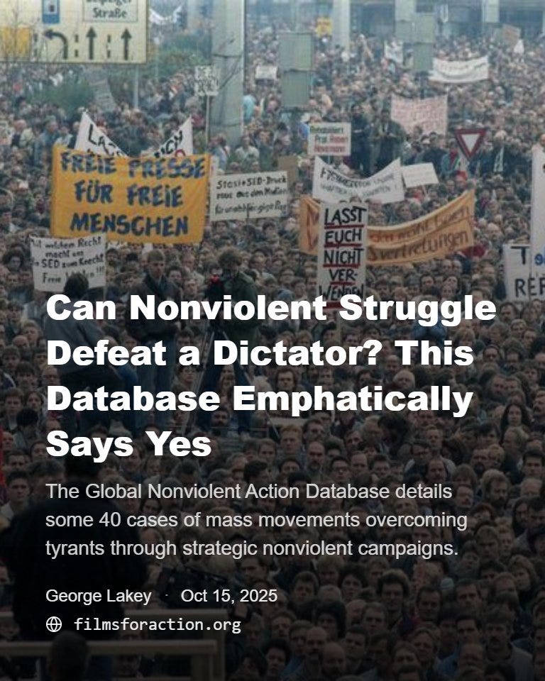 Can nonviolent struggle defeat a tyrant? There are many great resources that answer this question, but the one that’s been on my mind lately is the Global Nonviolent Action Database, or GNAD, built by the Peace Studies department at Swarthmore College.